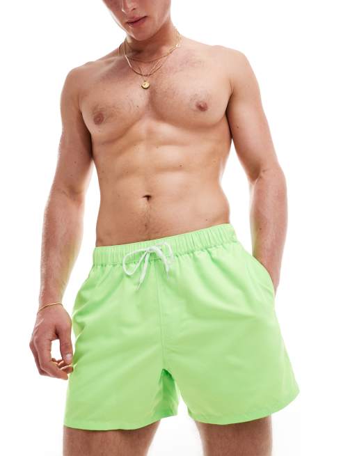ASOS DESIGN – Zielone neonowe krótkie szorty kąpielowe