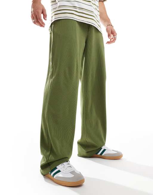 ASOS DESIGN – Zielone prążkowane spodnie o luźnym kroju