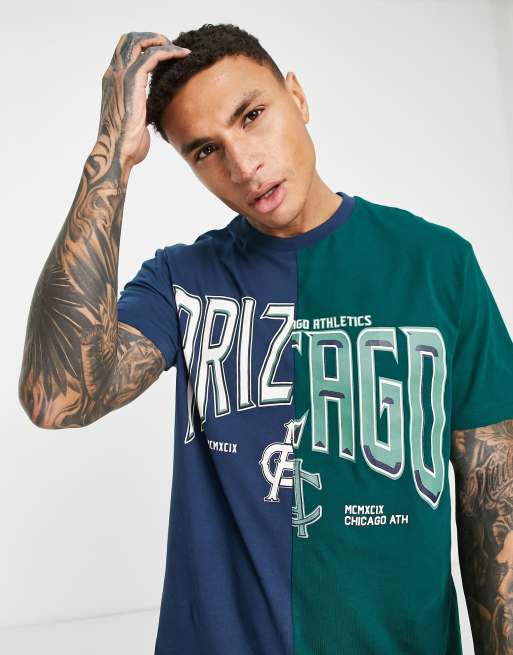 ASOS DESIGN – Zielono-niebieski T-shirt oversize z blokami kolorów i napisem „Arizona”
