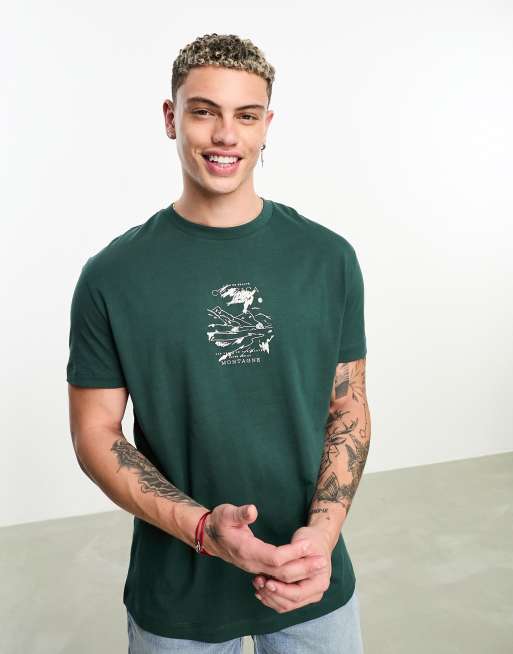 ASOS DESIGN – Zielony, luźny T-shirt z nadrukiem na klatce piersiowej