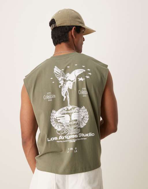 ASOS DESIGN – Zielony podkoszulek oversize z nadrukiem