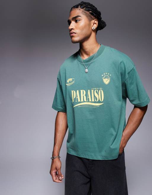 ASOS DESIGN – Zielony pudełkowy T-shirt oversize ze sportową grafiką