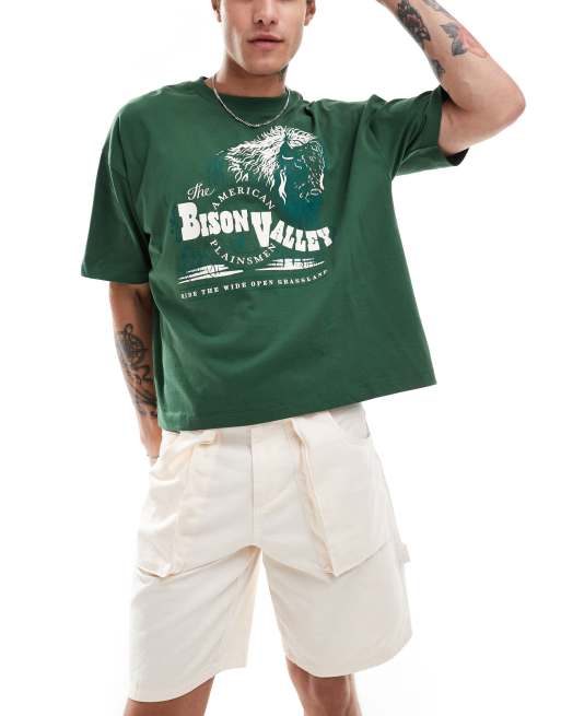 ASOS DESIGN – Zielony T-shirt oversize o pudełkowym kroju z nadrukiem z przodu