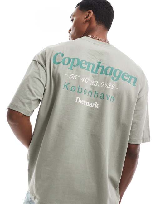 ASOS DESIGN – Zielony T-shirt oversize z nadrukiem z motywem miasta na plecach