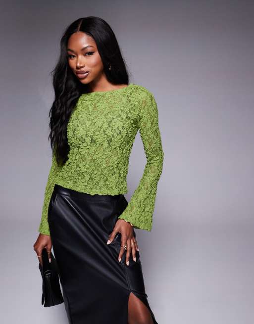 ASOS DESIGN – Zielony top z prześwitującej siateczki z rozkloszowanymi rękawami
