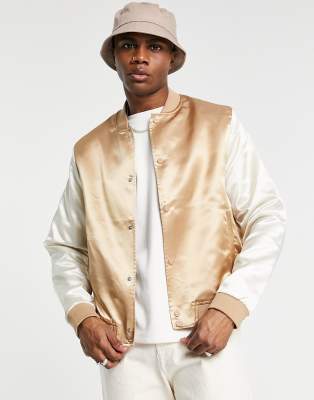 ASOS DESIGN – Złota kurtka bomberka z kontrastowymi rękawami