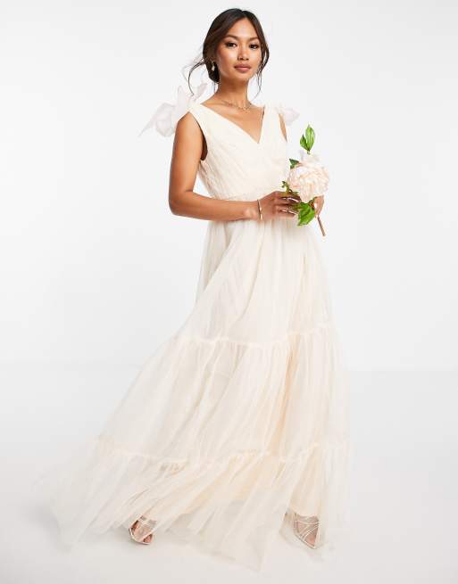 ASOS DESIGN – Złota plisowana sukienka maxi z tiulu na ramiączkach