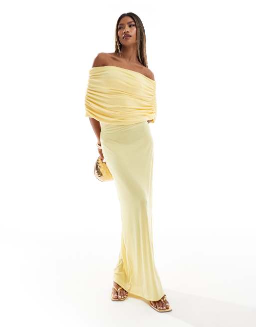 ASOS DESIGN – Żółta prążkowana sukienka maxi bez rękawów z dekoltem bardot