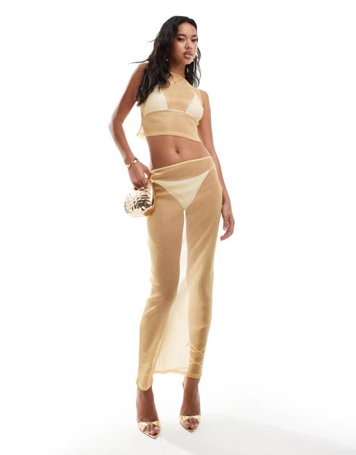 ASOS DESIGN – Złota prześwitująca spódnica maxi z błyszczącego materiału, część zestawu