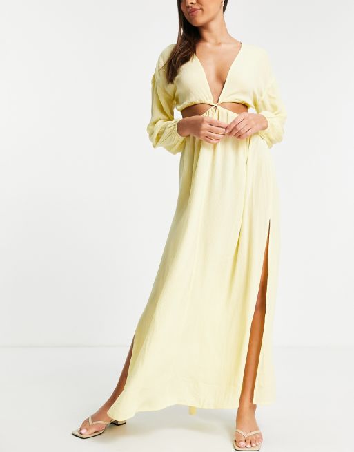 ASOS DESIGN – Żółta sukienka plażowa z wycięciem w talii