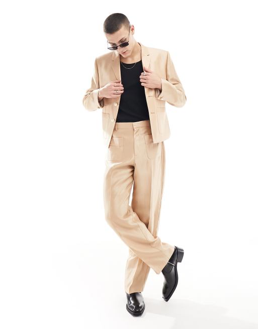 ASOS DESIGN – Złote spodnie garniturowe o prostym kroju