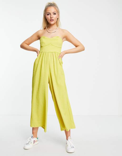 ASOS DESIGN – Żółtozielony fakturowany kombinezon z dekoltem bandeau