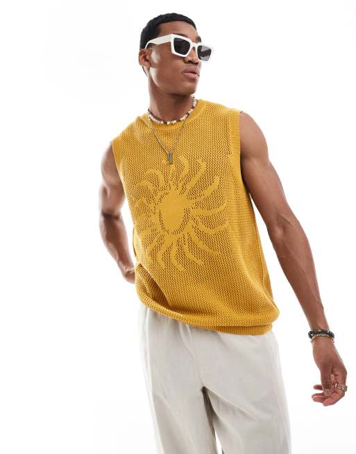 ASOS DESIGN – Żółty podkoszulek z szydełkowanej dzianiny z fakturowanym wzorem w słońca