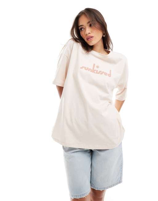 ASOS DESIGN – Żółty T-shirt oversize z grafiką z napisem „Sunkissed”