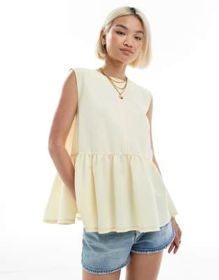 ASOS DESIGN – Żółty top bez rękawów z baskinką i wiązaniem na plecach