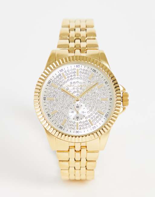 ASOS DESIGN – Złoty zegarek na bransolecie z tarczą zdobioną kryształkami