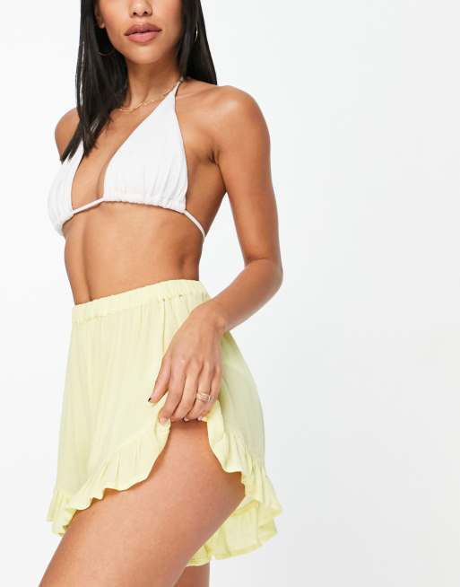 ASOS DESIGN – Zwiewne żółte szorty z gniecionego materiału z falbanką