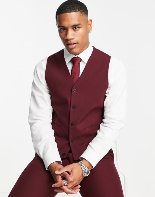 Bordowa kamizelka garniturowa o dopasowanym kroju ASOS DESIGN