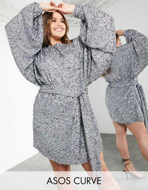 ASOS EDITION Curve – Cekinowa sukienka mini z obszernymi rękawami oversize z obcisłymi mankietami