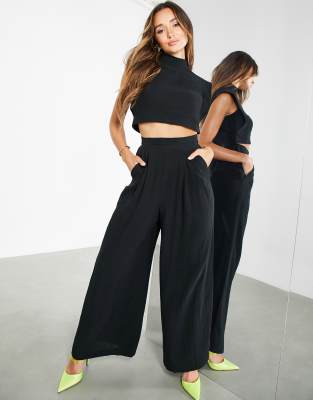 ASOS EDITION – Czarne spodnie z szerokimi nogawkami i ozdobnym szwem