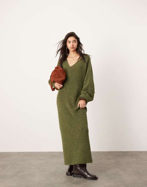 ASOS Edition – Dzianinowa sukienka maxi z dekoltem w szpic w kolorze khaki