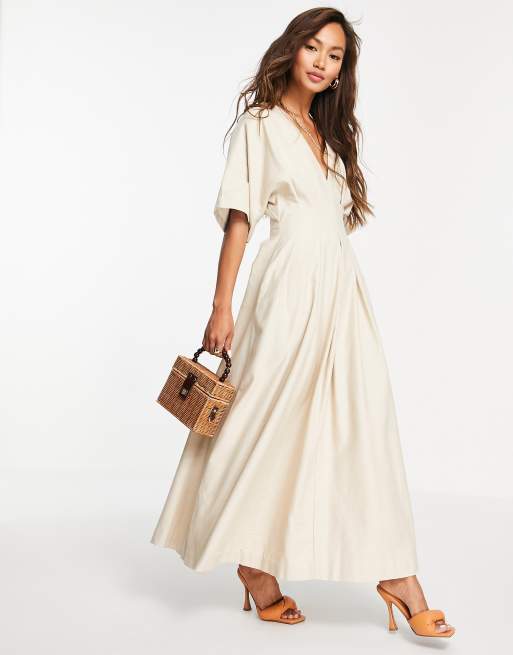 ASOS EDITION – Jasnobeżowa sukienka midi z zakładkami w talii