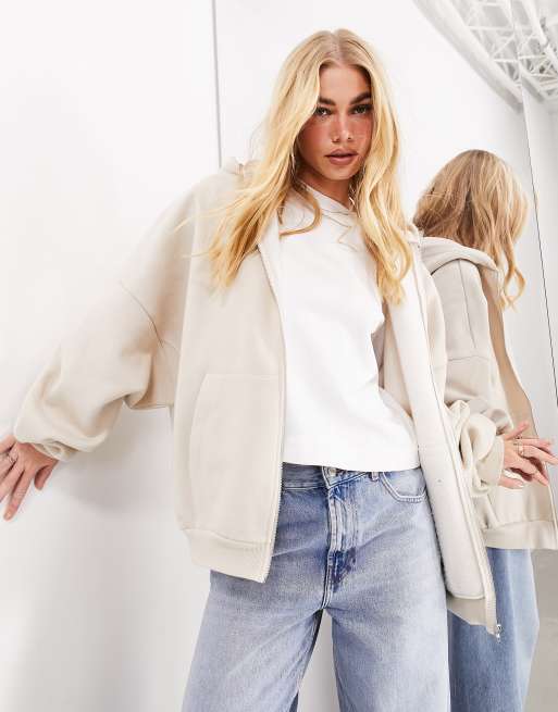 ASOS Edition – Jasnobeżowa zapinana na zamek gruba bluza oversize z kapturem