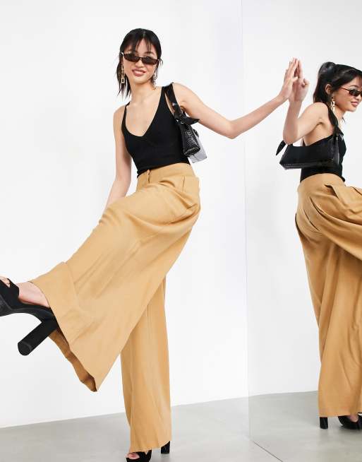 ASOS EDITION – Jasnobrązowe spodnie z szerokimi nogawkami i zakładkami