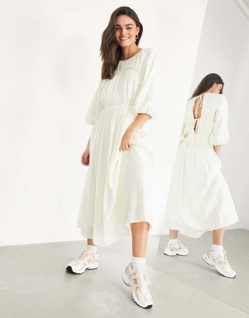 ASOS EDITION – Kremowa, luźna sukienka z ozdobnymi szwami