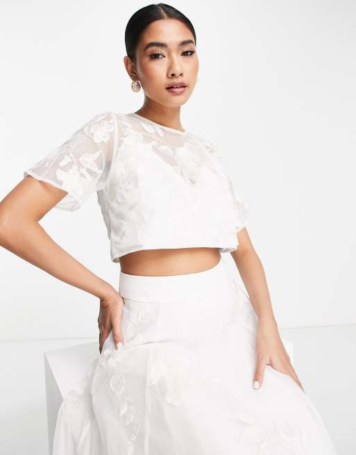 ASOS EDITION – Krótki top na ramiączkach z siateczką w haftowane kwiaty