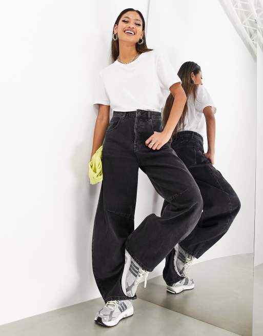 ASOS Edition – Sydney – Czarne jeansy z poszerzanymi nogawkami, wysokim stanem i efektem sprania