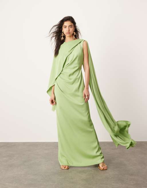 ASOS Edition – Szałwiowa drapowana sukienka satynowa maxi z marszczoną talią