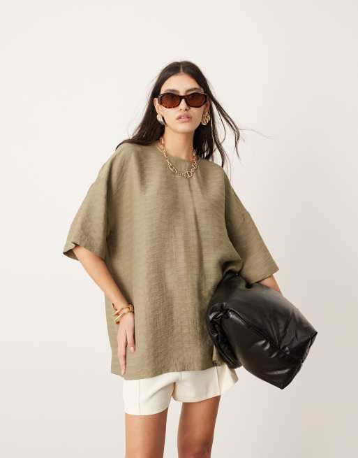 ASOS Edition – Teksturowany zielony T-shirt z tkaniny o pudełkowym kroju