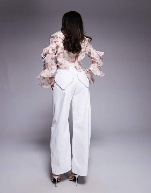 ASOS LUXE – Białe jeansy z baryłkowatymi nogawkami i kieszeniami w kształcie serca