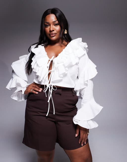 ASOS Luxe Curve – Biała bluzka z dużymi falbankami z bawełnianej popeliny