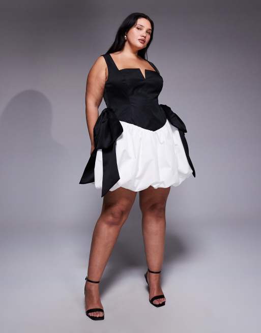 ASOS Luxe Curve – Czarno-biała sukienka mini z dołem typu bombka i kokardkami