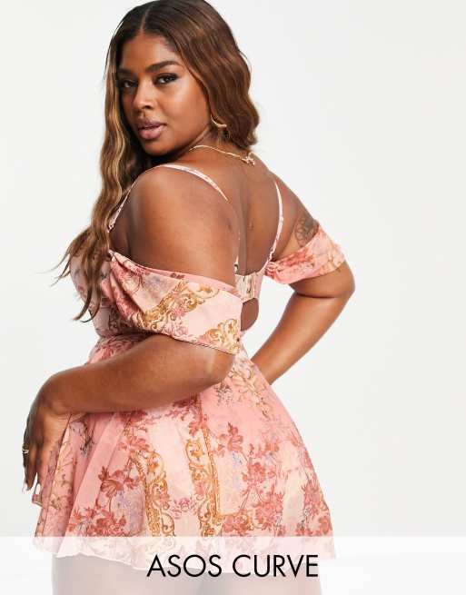 ASOS Luxe Curve – Dół od bikini z wysokim stanem i spódniczką w apaszkowy wzór