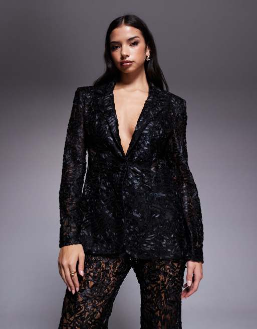 ASOS Luxe – Dopasowana koronkowa marynarka w kolorze czarnym, część zestawu