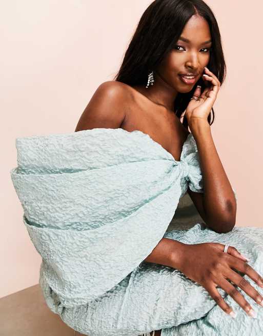 ASOS LUXE – Miętowy top z dekoltem bardot i kokardą z teksturowanej organzy – Część zestawu