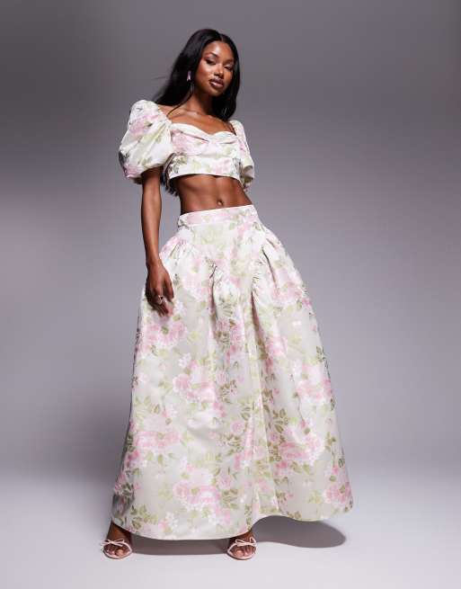 ASOS Luxe – Spódnica maxi z kokardką z tyłu w żakardowy wzór w tulipany, część zestawu
