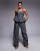 ASOS Luxe – Szary zestaw w prążki z gorsetowym topem z baskinką i zakładkami i spodniami z baryłkowymi nogawkami