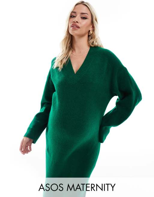 ASOS DESIGN Maternity – Ciemnozielona dzianinowa sukienka midaxi z dekoltem w szpic