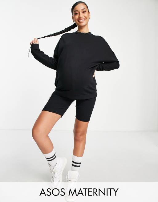ASOS DESIGN Maternity – Czarny dres: bluza oversize i prążkowane krótkie legginsy z talią pod brzuch