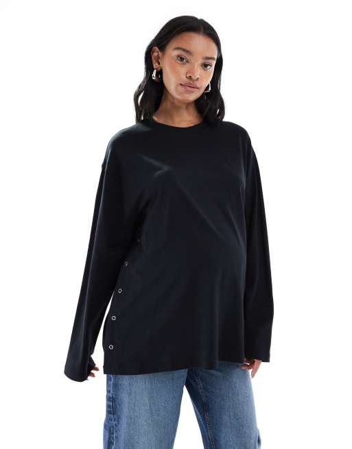ASOS DESIGN Maternity – Czarny T-shirt z długim rękawem i funkcją karmienia