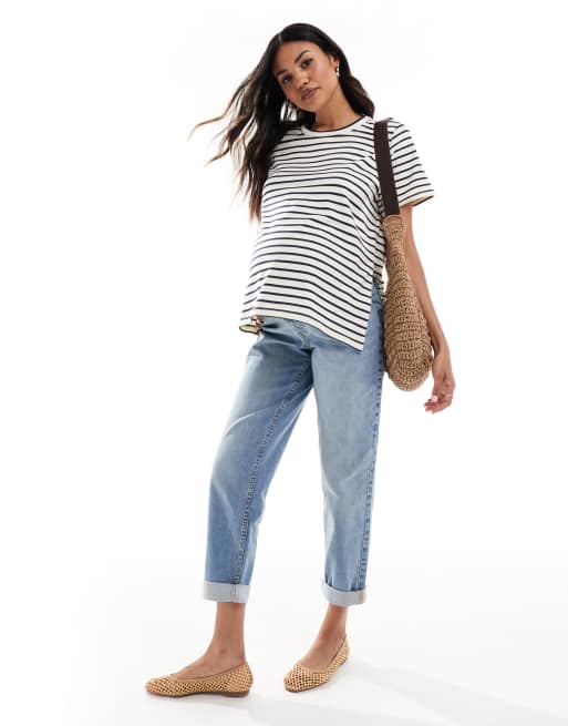ASOS DESIGN Maternity – Jasnoniebieskie luźne jeansy mom fit z wysokim stanem