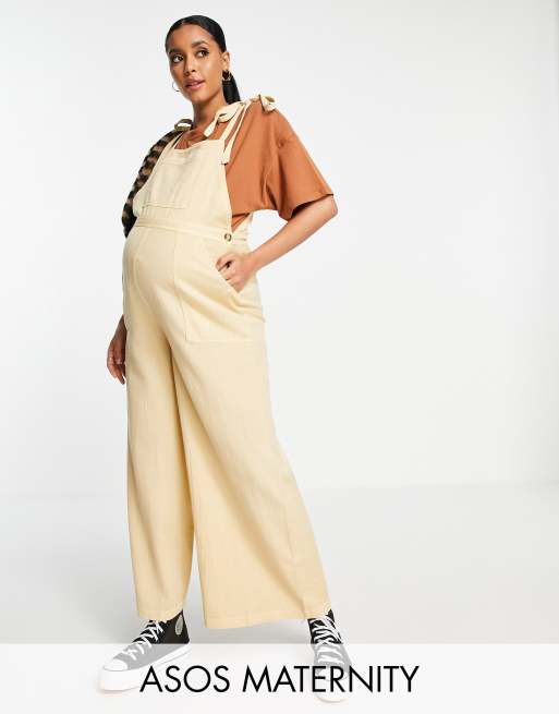 ASOS DESIGN Maternity – Kamiennobeżowe teksturowane ogrodniczki z wiązanymi ramiączkami