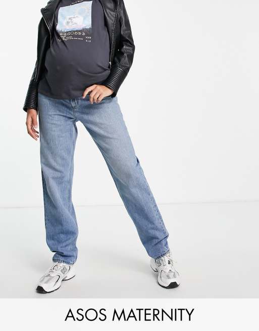 ASOS DESIGN Maternity – Niebieskie luźne mom jeans z wysokim stanem i efektem sprania
