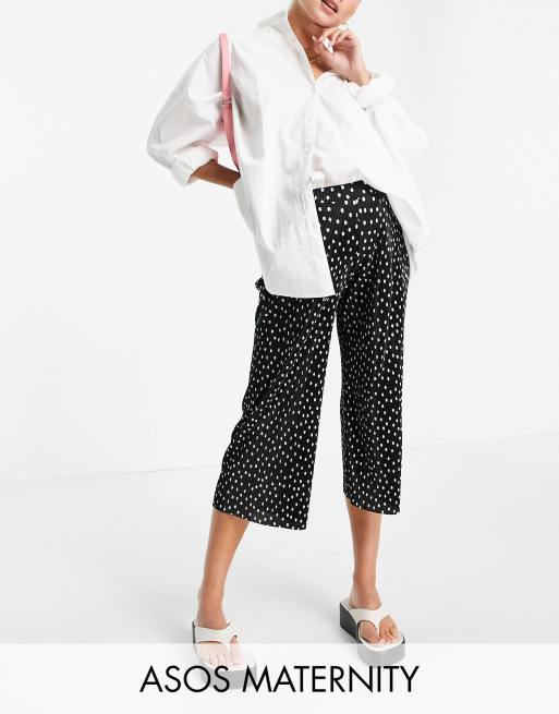 ASOS DESIGN Maternity – Plisowane kuloty w groszki o fasonie zasłaniającym brzuch