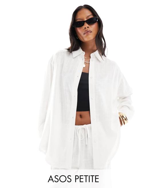 ASOS DESIGN Petite – Biała luźna koszula z imitacji lnu, część zestawu