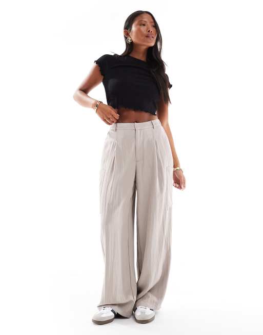 ASOS DESIGN Petite – Brązowoszare spodnie z baryłkowymi nogawkami w stylu utility
